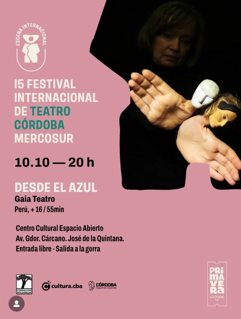 Síntesis argumental: «Desde el Azul» es la obra creada a lo largo de la vida artística de Ines Pasic. Con humor y poesía crea las imágenes y situaciones que expresan la condición humana. Dialogando con los títeres corporales que son parte de ella misma pero también son «el otro» que desea ser escuchado y considerado lleva al público a un viaje lleno de emociones. Música, movimiento y figuras crean un universo intimo y sorprendente que busca reconciliar sus alboratadas partes.