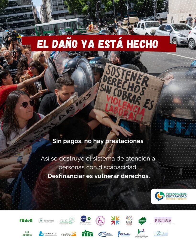 «El daño ya está hecho», afirma el Foro Permanente de Promoción de Derechos de Discapacidad en un mensaje en el que advierte que los atrasos en los pagos por parte de Incluir Salud, PAMI y obras sociales, derivados del incumplimiento de la Ley de Emergencia en Discapacidad, han generado consecuencias gravísimas en todo el sector. «Sin pagos no hay prestaciones», alertan.