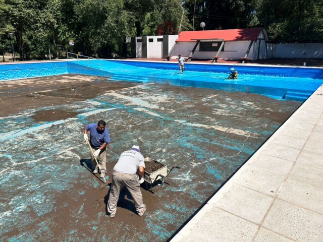 Equipos de trabajo municipal realizan tareas de limpieza en la Pileta Municipal del Parque García Lorca, lo que retrasó su apertura al público, explicaron.