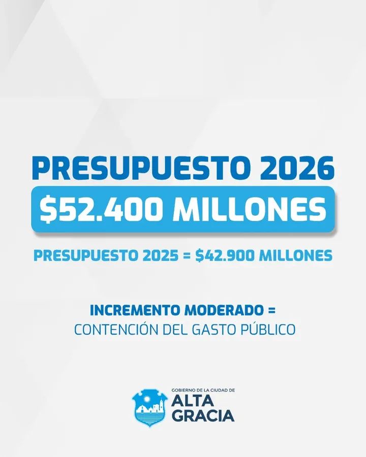 Uno de los elementos centrales expuestos por las autoridades fue la eficiencia de la administración local: mientras municipios de tamaño similar registran gastos de entre $1,3 y $2 millones por habitante, Alta Gracia destina un monto de $873.333 por habitante, lo que la posiciona como una gestión 36% más eficiente. “A pesar del difícil contexto nacional, el esfuerzo no va a recaer en los vecinos. Le pedí a mi equipo económico, como lo venimos haciendo, mantener un gasto contenido, con un aumento del 0 %”, remarcó el Intendente.