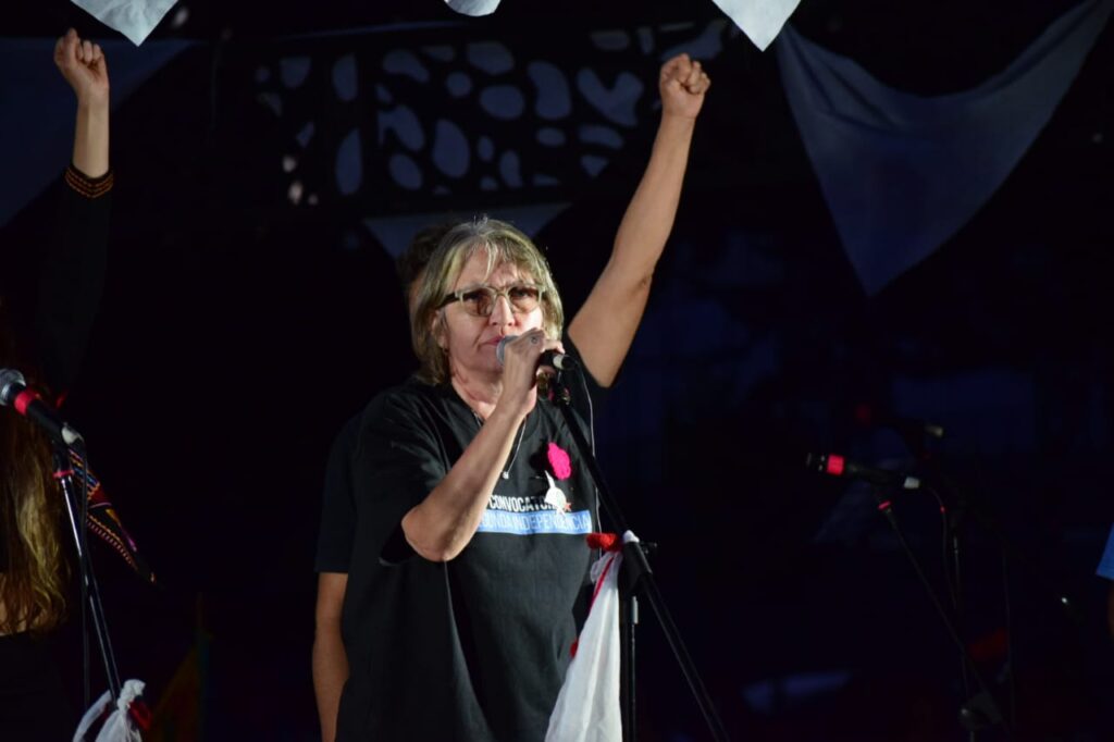 Hoy, como cada 24 de marzo, nos encontramos en este Anfiteatro de la Memoria y en cada plaza del país, para hacer juntos un ejercicio colectivo de memoria, para gritar bien fuerte que aquí nadie olvida, que a los retorcidos discursos negacionistas que bajan desde el gobierno nacional nosotros le oponemos plazas y calles llenas que gritan NUNCA MÁS.