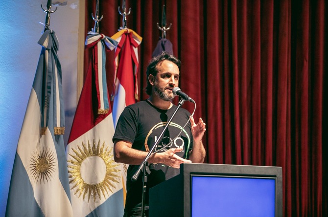 El músico agradeció el reconocimiento con un mensaje centrado en la importancia del arte y las luchas populares; y en alusión a la causa judicial Enterramientos Clandestinos, en el marco de la cual el Equipo Argentino de Antropología Forense empieza un trabajo de prospección y excavación en el Espacio para la Memoria La Perla, recordó su actuación en la recuperación de este ex centro clandestino de detención, torturas y exterminio de la dictadura; y expresó su apoyo a la lucha por Memoria, Verdad y Justicia.