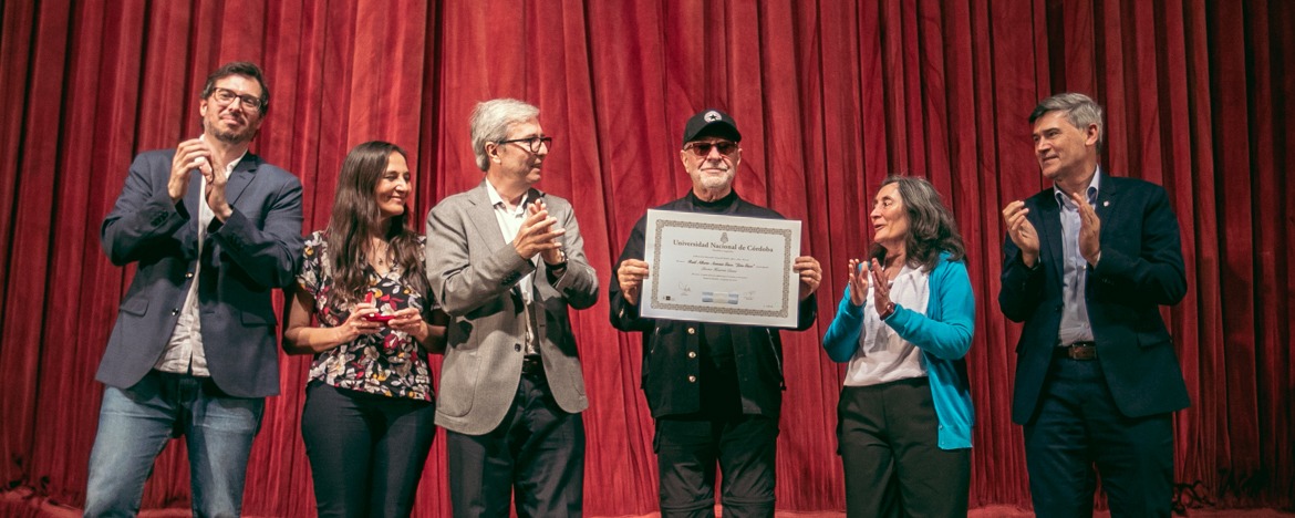 La Casa de Trejo distinguió al músico con el título de Doctor Honoris Causa por su compromiso social y cultural, y por su trayectoria marcada por la defensa de los derechos humanos. La ceremonia se realizó en la Sala de las Américas del Pabellón Argentina, con entradas agotadas, y fue transmitida en vivo por el canal de YouTube de la Secretaría de Extensión Universitaria.